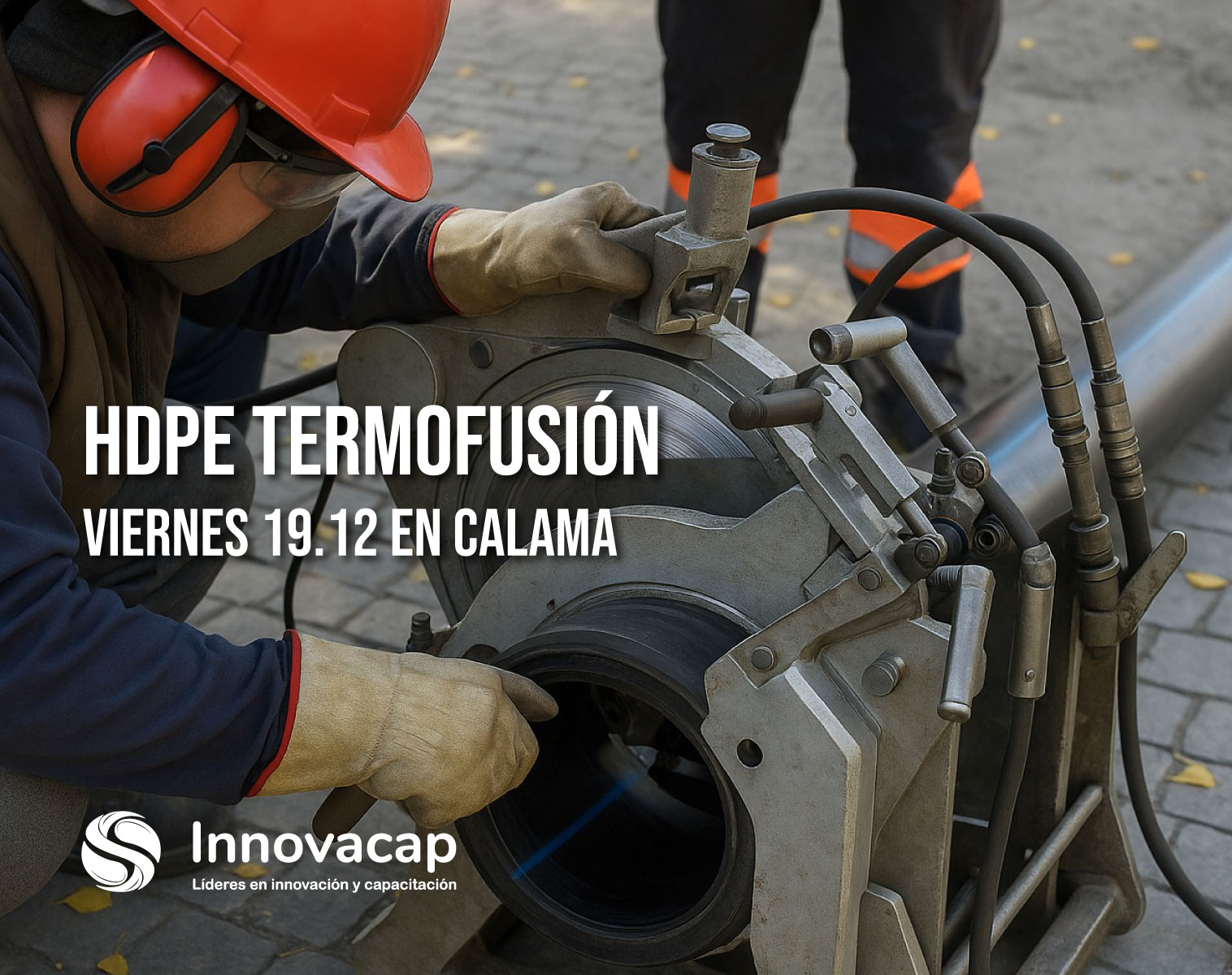 Capacitación en el proceso de termofusión HDPE para la industria minera, enfocada en soldadura, instalación segura de tuberías y cumplimiento de normativas vigentes.